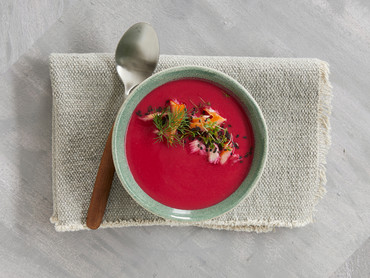 Rote Beete Süppchen mit Stremellachs-Garnitur