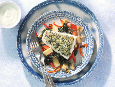 Rotbarsch mit Sesamkruste auf Algengemüse