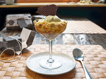 Winterapfel im Glas mit Pistazieneis und Spekulatius