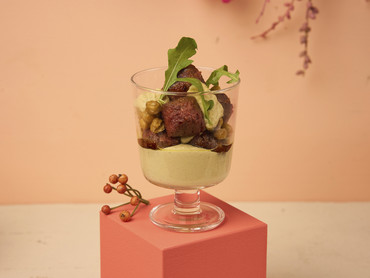 Vegane kein-Hack Bällchen mit Humuscreme und gebratenen Kichererbsen