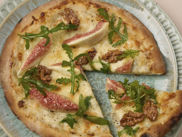 Mini Pizza 5 Käse mit Feigen, Rucola und gerösteten Walnüssen