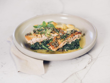 Norwegisches Lachsfilet in Limonen-Kapernbutter mit Blattspinat & Gnocchi (von Johann Lafer)