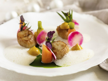 Jakobsmuscheln mit Karottenpüree und Estragonsauce (von Johann Lafer)