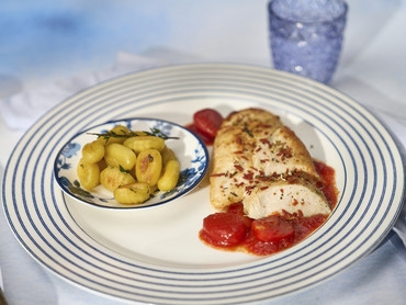 Hähnchenbrustfilet „Pomodori“ mit gerösteten Gnocchi
