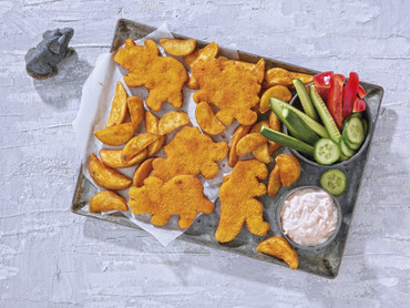 Knusprige Dino-Wedges mit Dip