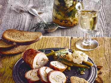 Kräuter Puten Roulade mit Gemüse Pickles