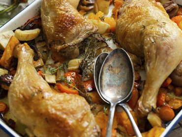 Ofenhähnchen auf Wintergemüse