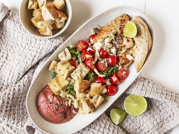 Caesar´s Hähnchen Bowl mit Beete Hummus