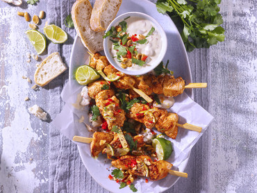 Tandoori-Hähnchen-Spieße mit spicy Erdnuss-Sauce