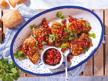 Gegrillte Hähnchenbrust auf Tomatensalsa