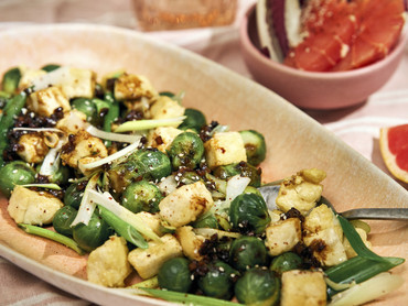 Knuspriger Tofu mit Rosenkohl & Asia-Sauce