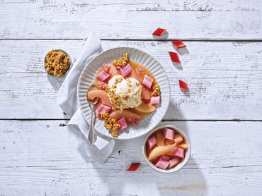 Pancakes mit Kaffeehaus Eis und Rhabarber-Erdbeerkompott (von Johann Lafer)