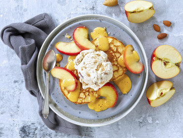 Pancakes mit karamellisierten Äpfeln und Mandelsabayon
