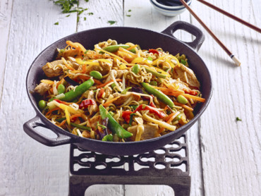Gebratene Nudeln wie beim Chinesen mit Hähnchenstreifen