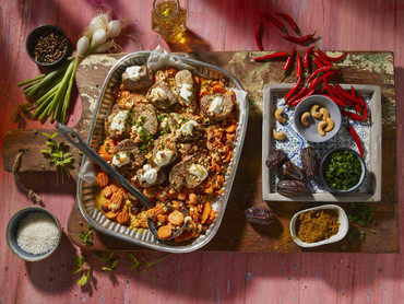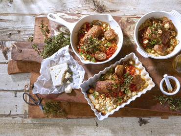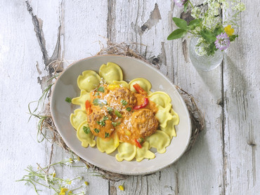 Ofen-Zoodles mit Hackröllchen "Hirten Art"