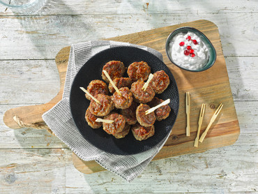 Mini-Frikadellen mit Granatapfel-Joghurt-Dipp
