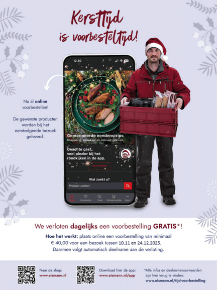 1. Bestel online via de site of de eismann-app voor een bezoek tussen 10-11-2025 en 24-12-2025
